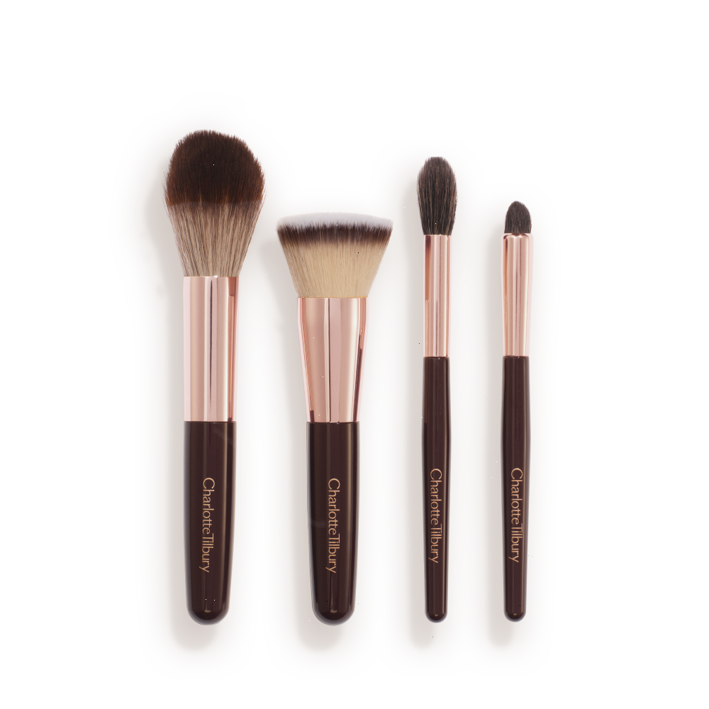 ONLY available on charlottetilburymart.com and the App, this makeup brush set includes 4 mini makeup brushes and a travel-sized makeup bag for easy makeup touch ups on the go!