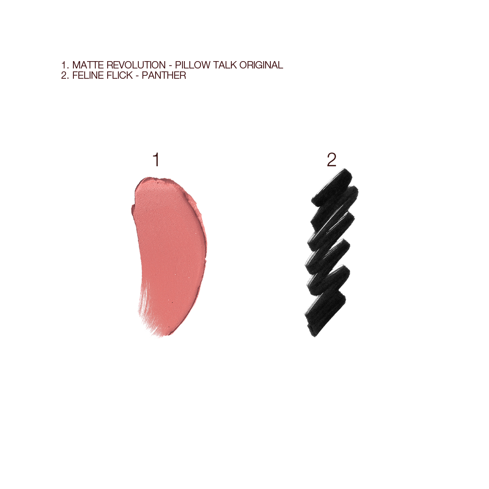 Darlings, discover my Airbrush Complexion, Feline Flick & Pillow Talk Lips Kit, a magical makeup kit featuring my Airbrush Flawless Finish powder for complexion-perfection in seconds, my Feline Flick waterproof liquid eyeliner for eyes that hypnotise and my AWARD-WINNING, globally adored Matte Revolution lipstick in Pillow Talk Original for a kissable, fuller-looking pout!