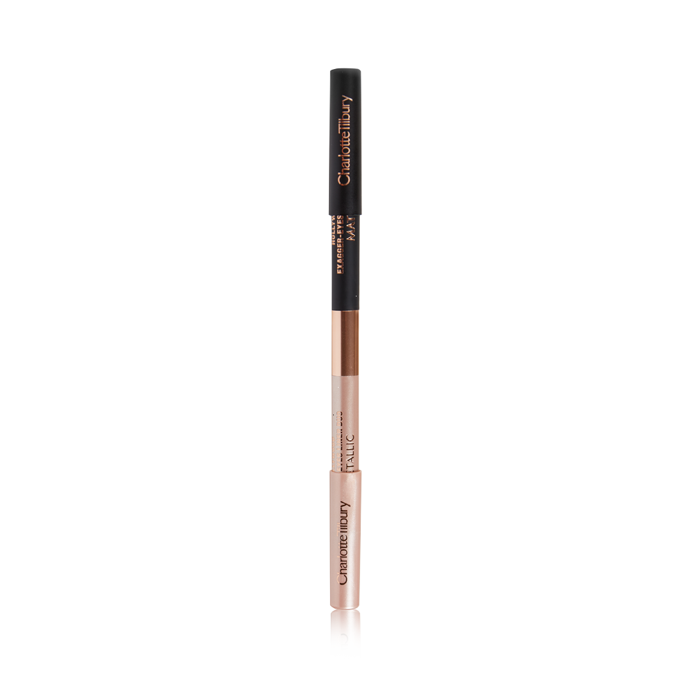 Mimicking the contrasting effects of bright and dark and light and shade, this black and champagne-nude eyeliner duo is my EYE GLOW FILTER that plays with the light to give you the look of wider, brighter eyes!