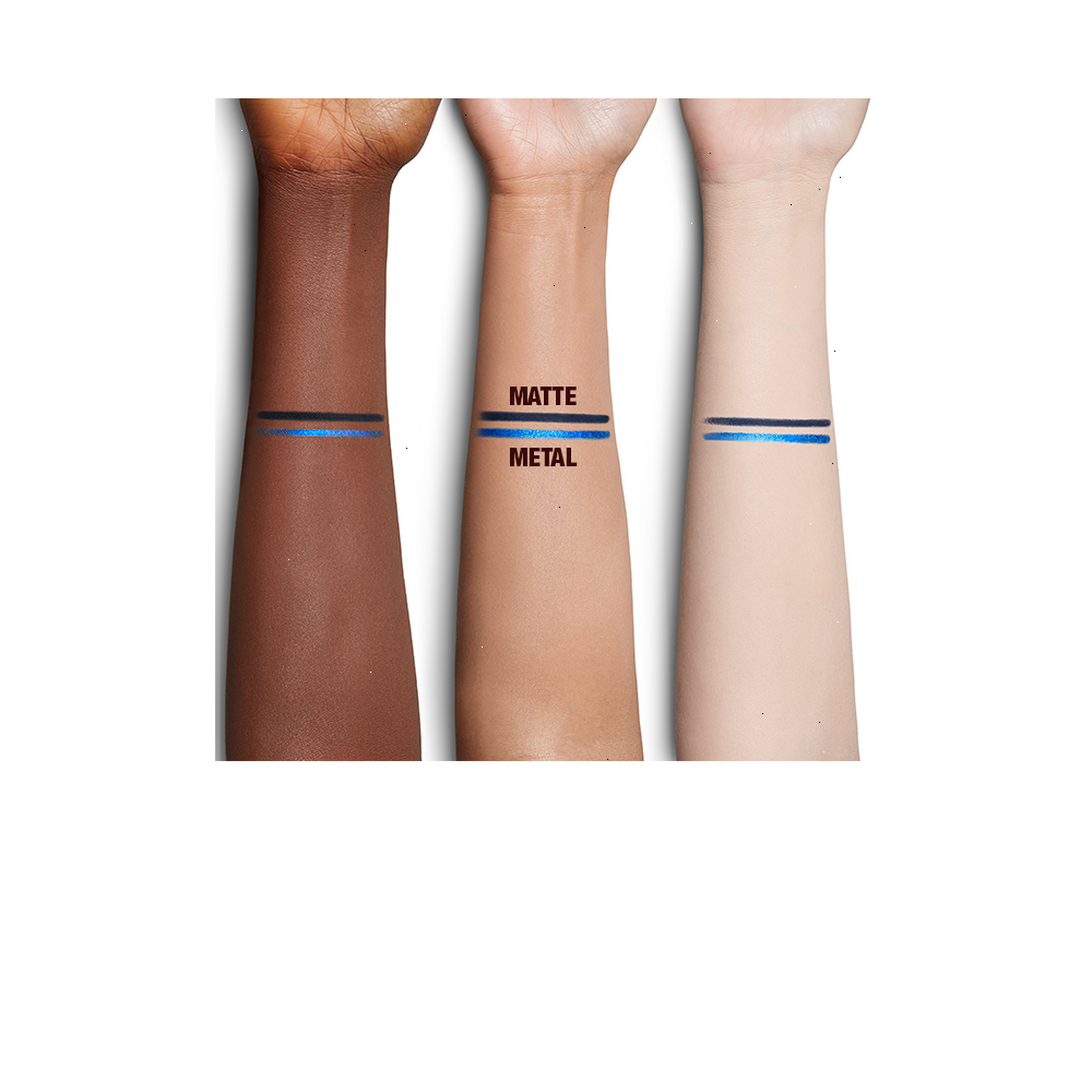 SHADE: METALLIC – SUPER BLUE INGREDIENTS: TRIMETHYLSILOXYSILICATE, HYDROGENATED POLYISOBUTENE, SYNTHETIC WAX, MICA, ISODODECANE, POLYBUTENE, SYNTHETIC FLUORPHLOGOPITE, ETHYLENE/PROPYLENE COPOLYMER, SILICA SILYLATE, PEARL POWDER, PENTAERYTHRITYL TETRA-DI-T-BUTYL HYDROXYHYDROCINNAMATE, CERA CARNAUBA/COPERNICIA CERIFERA (CARNAUBA) WAX/CIRE DE CARNAUBA, TIN OXIDE, [+/- TITANIUM DIOXIDE (CI 77891), FERRIC AMMONIUM FERROCYANIDE (CI 77510)."]