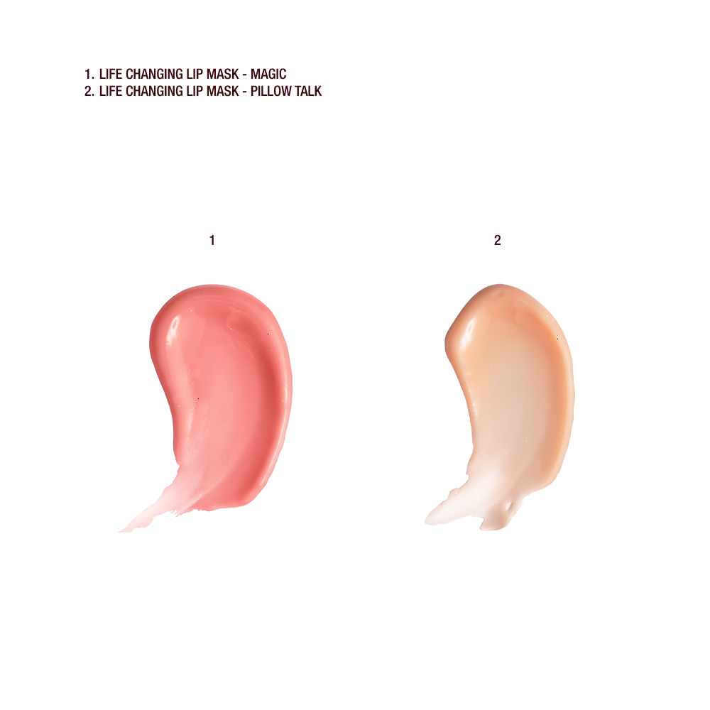 Charlotte's Life-Changing Lip Mask is my 6-in-1 miracle lip fixer! Formulated with Lip Lift Technologyâ„¢, this hydrating lip mask revives, replumps and retexturises the look of lips for a clinically proven lip-plump effect. Choose from the vanilla-scented Pillow Talk to wrap lips in a gentle kiss of sheer pink or the unscented Magic to cocoon lips in a colour-free, glow-sculpting finish.