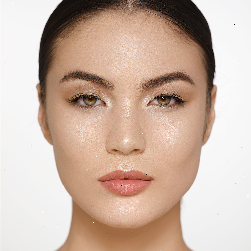 NOSE TRICK… TO DEFINE AND CONTOUR THE NOSE! Charlotte calls this her exclamation point highlight! Start at the bridge and apply down the CENTRE OF THE NOSE and then dot at the tip – like a button! Blend with your fingertips to diffuse.
