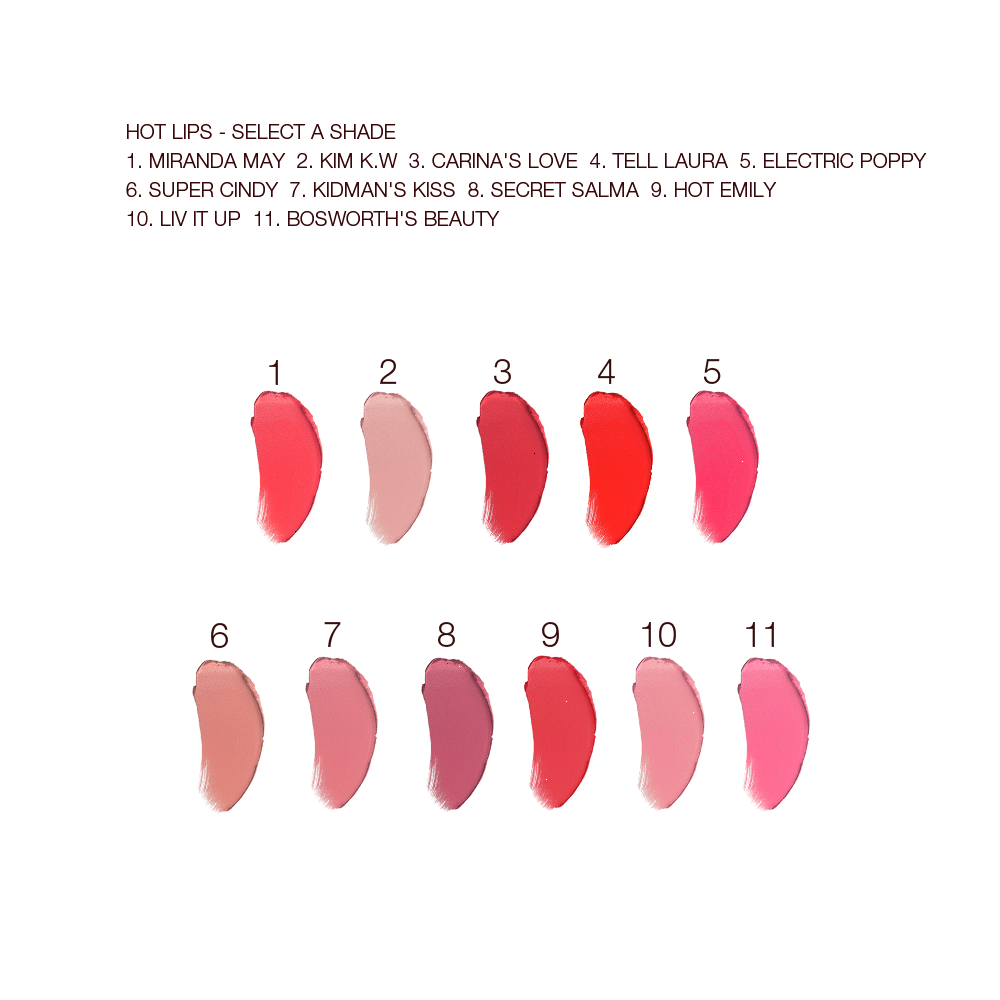 Hot Lips lipstick in a shade of your choice: my Hot Lips collection features dreamy matte and moisturising lipsticks in shades inspired by 11 icons! Unlock the secret to a celebrity-inspired pout in the swipe of a lipstick!