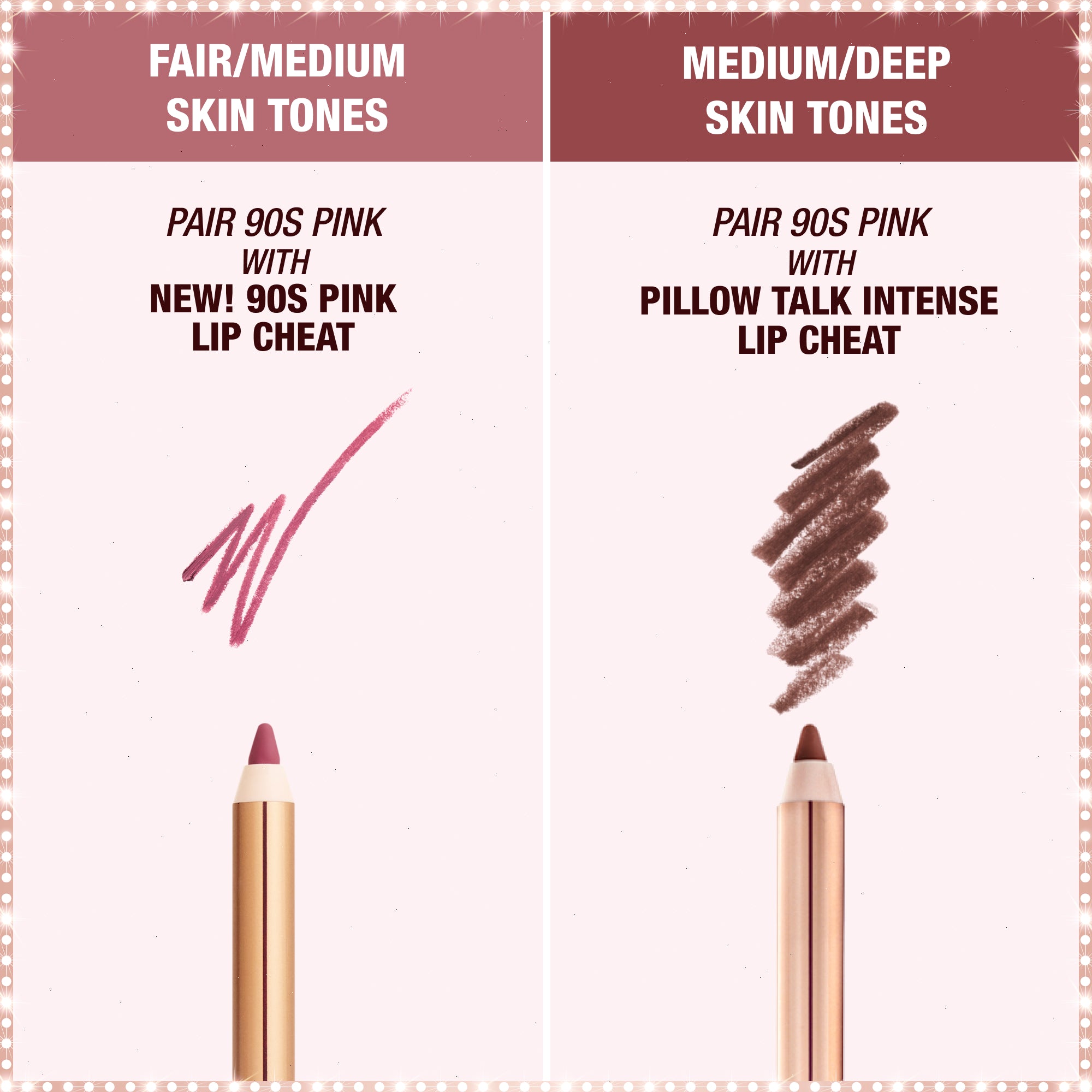 For fair-medium skin tones, pair with NEW! Lip Cheat in 90s Pink to resize the look of your lips for the ultimate Hollywood pout! If you have a tan-deep skin tone, choose Lip Cheat in Pillow Talk Intense as your matching lip liner!