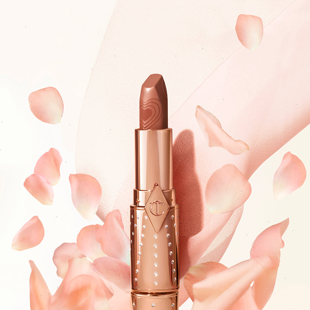 Darlings, if you love my ICONIC Pillow Talk shade, you will FALL IN LOVE with my NEW! K.I.S.S.I.N.G lipstick in Nude Romance! This is a magical peachy-nude lipstick in a refillable, bejewelled case that will be every BRIDE’S BEST FRIEND, every SUPERMODEL’S RUNWAY SECRET and everyone’s PARTY TRICK to cheat your most LUSCIOUS LIPS!