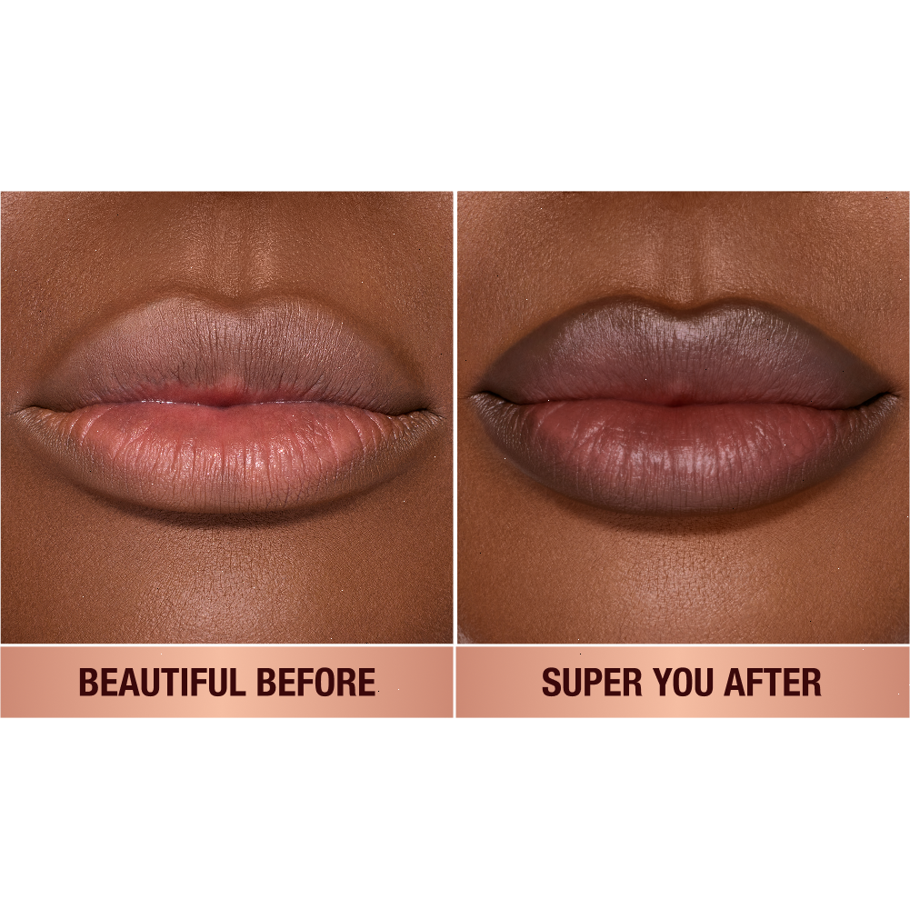 SCULPT END: Define, contour + sculpt by tracing along the outer edge of your natural lip line and gently diffuse using your fingertip or a lip brush. Overline to cheat a fuller-looking lip shape! FILL END: Fill in your lips from the centre outwards to create a soft blend into the sculpt shade and enhance the look of your pout.