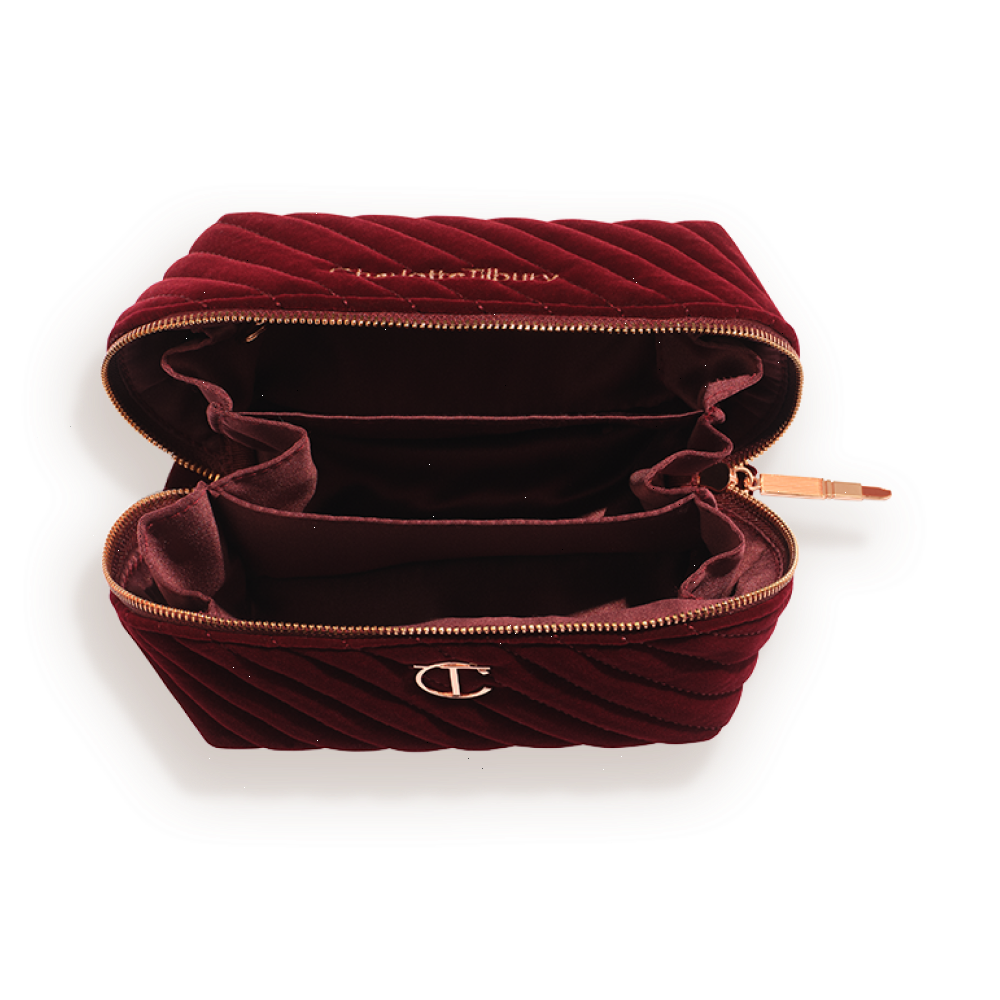My medium makeup organiser is a beautiful night crimson makeup bag in quilted velvet. It has three magic compartments and one zip pocket to organise your favourite beauty secrets. It’s perfect for keeping in your carry-on to unlock a gorgeous globetrotter glow!