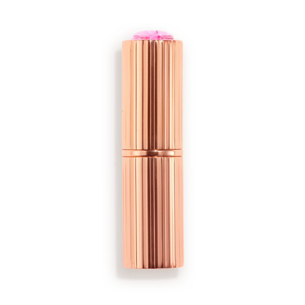 ♡ Iconic golden lipstick bullet, with a collectable lid adorned with a beautiful, light-reflecting pink heart jewel!