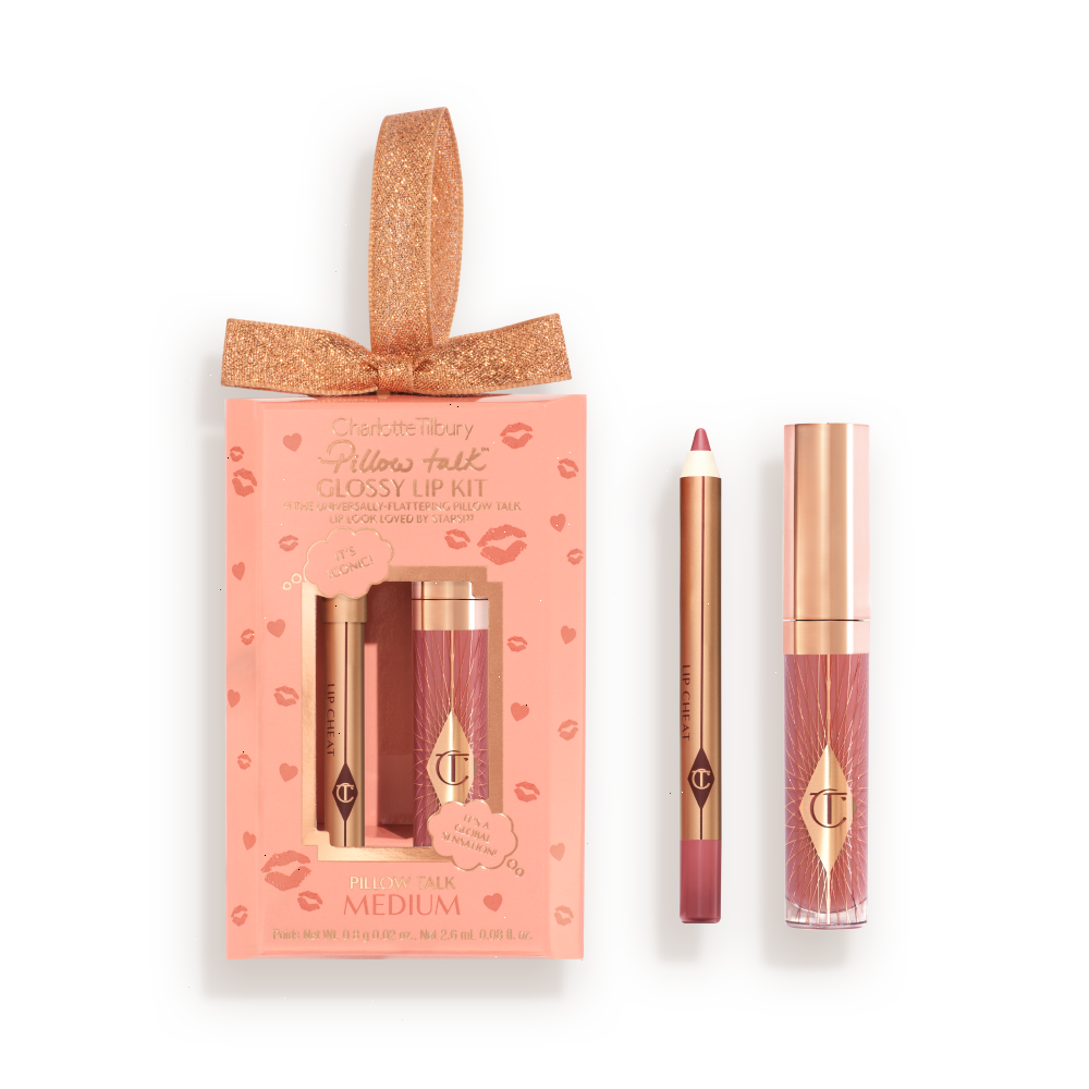 Darlings, Pillow Talk lips are happiness in a tube! The whole world is obsessed with Pillow Talk, and this travel-sized lip kit is an easy way to gift Pillow Talk magic to someone you love! Perfectly paired and finished with a ready-to-gift ribbon loop, my Pillow Talk Medium Mini Glossy Lip Duo belongs underneath every tree!