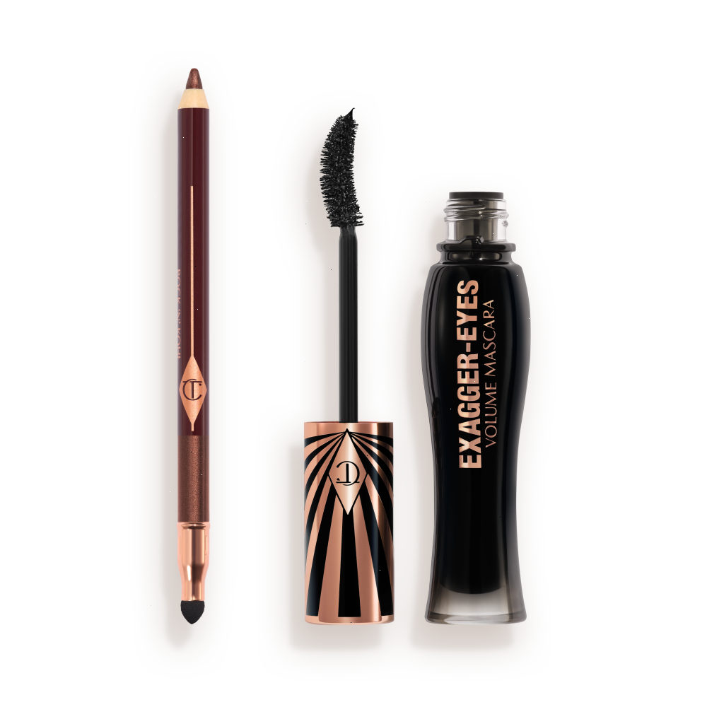 ONLY available on charlottetilburymart.com and the App, this kit includes your choice of 6 shades of my ultra-creamy, highly-pigmented kajal eyeliner pencils, plus your choice of my Exagger-Eyes Volume Mascara or Pillow Talk Push Up Lashes! mascara to create your dream lash look.