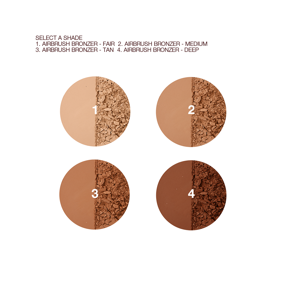 Airbrush Bronzer (Fill: 16g): My NEXT-GENERATION MATTE INNOVATION! Inspired by my 1 SOLD EVERY MINUTE worldwide PHENOMENON, Airbrush Flawless Finish powder*, my NEW! HYALURONIC ACID-INFUSED, MAGIC MATTE bronzer uses the same BEAUTIFYING AIRBRUSH DNA and fine-as-AIR FINELY-MILLED PIGMENTS to BLUR the appearance of PORES and SMOOTH over your skin for a the appearance of a BRONZED, SUN-KISSED complexion! Choose from Fair, Medium, Tan or Deep.