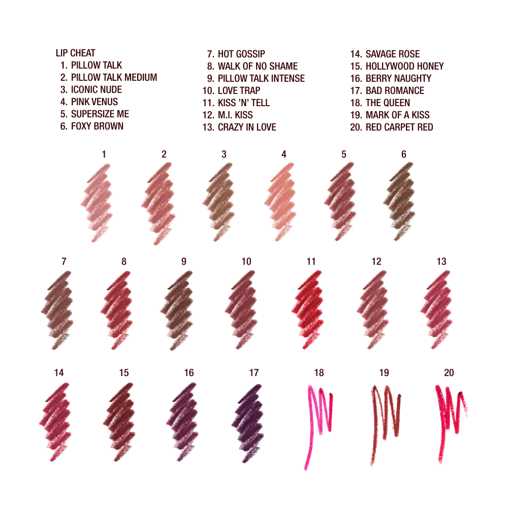 Lip Cheat is my waterproof lip liner for reshaping and resizing the look of your lips! The long-lasting formula glides onto lips for a velvety smooth, seamless line – so everyone can cheat the look of a fuller, wider, more defined looking pout! In 23 iconic shades from Pillow Talk to Walk of No Shame, discover the perfect Lip Cheat for every mood + moment!